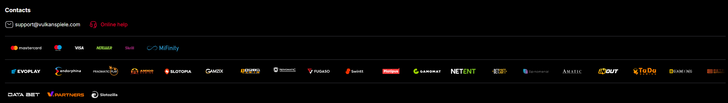 Upplýsingar um rekstur og leyfi (samkvæmt opinberum upplýsingum): vulkanspiele.com er rekið af Nixxe B.V. og er með leyfi frá Curaçao Gaming Authority undir leyfisnúmeri OGL/2024/1363/0705 (staða: Active, veitt 14/04/2025).